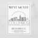 Ett unikt modernt vykort i deco-stil för flyttmeddelande för den vackra staden Columbus, Ohio. Detta kort har en stiliserad illustration av stadens unika siluett med dess namn undertill. Därefter följer din adressinformation i en matchande öppen linje-stil. Alla individuella element på kortet är upplåsta, så ändra eller lägg till nödvändiga detaljer med hjälp av anpassningsfunktionen.