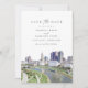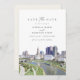 Det här sparar datumet med en vattenfärgsmålning av Columbus, Ohio-skyline. Redigera enkelt *de flesta formuleringar för att uppfylla dina behov och lägg till egna foton på baksidan med din bröllop-webbplats.
