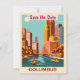 Denna högkvalitativa klassiska turismkonst fångar den lugna skönheten i Columbus strandpromenad. Med sin mitten av seklets charm är det ett underbart val för din Ohio-baserade bröllopsinbjudan eller spara datumet.