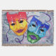 Ursprunglig vattenfärgsmålning av Sandra Gale innehåller två teatermasker. Den coola masken för färgad i blues lila och gröntar betecknar den tragiska sidan av handling och det varma färgen av röd orange och gult representerar den komedi eller lycklig som finns på duosidan. Underbar design för dem som spelar teatern i kärlek, agerar eller om du bara har masker.
