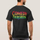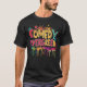 Den här t-shirt-skjortan med öga har sloganen "Comedy Evergreen" i en pulserande multifärgad övertoning. Varje brev övergår jämnt till nästa, vilket skapar en dynamisk och visuellt glädjande effekt.