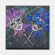 Ursprunglig målning av Sandra Gale, med två jestermasker, en leende och en frossa med festive party bakgrund. Underbar utformning för hela party tillfälle och Mardi Gras firande. Även en underbar utformning för teaterentusiaster och de som kärlek konst.