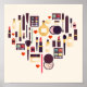 Den här designen innehåller en samling sminkartiklar och söta röda hjärtan.