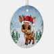 Comet! Celebrate the holiday season with this festive round ceramic red ornament featuring an endearing woodland forest animal cartoon graphic of a cute baby reindeer wearing a Santa hat, and Merry Christmas written in white. Perfect deer with antlers for decorating your tree or as a thoughtful gift, this whimsical doe decor makes a cherished keepsake for years to come. Customize by changing the text, the font, the font color, or remove the text. You can even transfer this design onto other products. Enjoy this design your way! 🎄🩌 Dimensions: Diameter: 2.87". Thickness: 0.156". Weight: 1.4 oz. Made of white porcelain. Full-color, full-bleed printing. Printing on both sides. Thread does not come attached/tied.