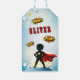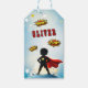 Comic Style Superhero Boy's Name Birthday Presentetikett