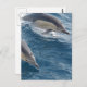 Det här är ett foto av två vanliga delfiner som hoppar ut från vatten.