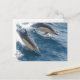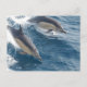 Det här är ett foto av två vanliga delfiner som hoppar ut från vatten.