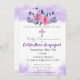 Touch of purple and beautiful watercolor flowers for this religious invite.