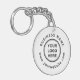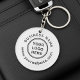 Each keychain features your company logo and custom text.