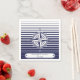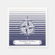 En nautisk design med en vanlig kompass ro på blått och vitt rand och en etikett med anpassade text.
