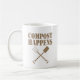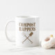 Compost händer! - den trädgårdarbeteaste humorn i brunt stencilerar bokstäver med trädgårds- verktyg. Också tillgängligt som en travel mug.