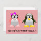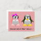 Computer Geek Valentine: Programming Language Kärlek Postcard Två tecknad penguins, en rosa och en svart, som håller händer bunden över grunderna för datorprogrammering