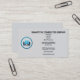En dator och bildskärm i en blå cirkel på en grått-bakgrund gör ett vasst och professionell affärskort för en datorreparationsverkstad. Kan också användas för en datainsamlingstjänst, datorsystemsbyggare, IT-guru eller datorförsäljning.