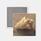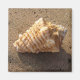 En snäcka från konjesjön vilar på sandstranden med lätt sidbelysning från solnedgången. Bilden är ett foto från färg som tas i Playa Grande, Costa Rica på Stilla Kusten. Anpassa den här strandmagneten för havets snäcka med egen text eller bilder.