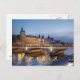 Det här är Conciergerie i Paris, Frankrike, och framför det Pont Napoleon kor, Seine River. Conciergerie började som palats och omvandlades sedan till fängelse. Marie Antoinette tillbringade sista dagarna här innan hon fördes till giljotinen under Franskens Revolution. Nu finns det ett museum. Bilden togs vid vriden och ljus i Paris har börjat kom på när sol har gått och natten sjunker på ljusets stad. De kastar vackra reflektioner på floden. Detta är en populär parisisk turist attraktion och ett fantastiskt exempel på god arkitektur.
