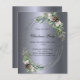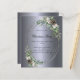 En faux silver tittar bakgrund som dekorerats med koner, vita bär och grönsaksbär. En oval ram. Anpassa och lägg till informationen. 1 lakan = 1 inbjudan tryckt kant till kant.
