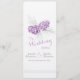 Dubbla-sidig, enkel, modern gräs cone teckning bröllopsmiddagsmeny på söt lila lavender och grått hues på vitt. Perfekt för bord eller ge före bröllop. Anpassa din egen namn och dina fyra kursmenydetaljer till motsatt. Unika blyertspennor teckning och utformade av Sarah Trett.