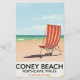 Coney Beach Porthcawl Wales-reseaffisch med en däcksstol på sandstranden under dagen. vintage stil-reseaffisch. Brittiska semesteravtryck i buss eller buss.