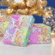 Hybrid pastel rainbow gradients in a half colored-in field of energetic squares.