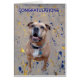 Confetti Congratulations Card in metallic gold and navy blue colors. A dog greets with high hopes of their success!
