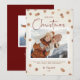 Modern anpassningsbar tryckte ut julfotokort med en enkel DIY-mall för anpassning. Den här chicens minimalistiska utformning har en konetti-prick med faux kopparfolie-utseende. Lägg till ditt familjefoto, hälsning, namn och året. Använda verktyg för att redigera typsnitt och färg. Baksidan har utrymme för att lägga till fler foton och text.
