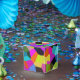 En roligt abstrakt i lyktglas, lila, rosa, fuchsia, orange, kalkgrön, oliv grönt, skogsblå, medelblå, orange, grönt, melon, gult, brun, svart och mycket mer!