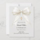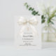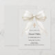 Invite guests with this sophisticated Confirmation invitation. The design features a luxurious ivory satin bow draped with delicate pearls and a shimmering gold cross set against a soft dove gray background. It is a beautiful choice for a young girl celebrating her Confirmation.