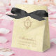 A vintage religious confirmation favor box that looks like old paper (parchment). The flap has a brown crest with a cross in it.