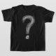High-contrast black t-shirt design — chaotic white scribble forming a large question mark symbolizing confusion and overthinking