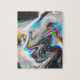 The holographic details are simulated in the artwork. There will be no actual holographic shine effects when printed.