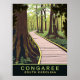 Congaree, nationalparken, South Carolina. Trä väg genom skogen. Reseaffisch.