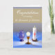 Express your joy in your RCIA/OCIA candidate's full reception into the Catholic Church with this beautiful card of congratulations. Card features the Holy Eucharist suspended above the chalice with the Precious Blood, a glass water pitcher symbolizing baptism, and the lit Paschal Candle for the fire of the Holy Spirit in Confirmation. Message on front declares: "Congratulations on receiving the Sacraments of Initiation". Interior left supplies a quote from Philippians 1:6 — "I am confident of this, that the one who began a good work among you will bring it to completion by the day of Jesus Christ." You as the sponsor have the option of customizing a message on the right side of the card in the field provided.