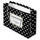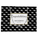 This black and white graduation gift back has black script you can edit to show a custom message. (Shown: Congratulations) Additional text is for personalizing the grad gift bag with the graduate's name and the year the student is graduating. The text is inside of a scalloped shape. The black gift bag has a pattern of graduate caps.