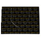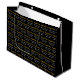 This graduation gift bag is black. Congratulations is in an elegant gold script. Two lines of white display text are below the script. You can edit the text to show the graduate's name and the year the student is graduating. The text forms a pattern on the gift bag. All text can be edited or deleted as desired.