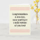 Folded card for a mom-to-be or parents-to-be. Say it in style: Congratulations on your mini version in the making! This folded pregnancy congratulations card reads “Congratulations & woo-hoo, soon you’ll have a mini version of you two!” Inside you find a sample message you can customize, or remove entirely if you prefer to handwrite your own note. Designed by Best Baby Gifts - given with love.