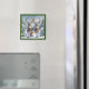 Två stora buck-hjort, antler till antler, förbiser en morotnosad snögubbe som ligger i gräs-koner. Snögubbe, en svart hatt och orange scarf, omges av vita sköldpaddor. En snöbuskskog i gräs ger bakgrunden, medan färgstarka genomskinliga bubblor flyter i grått, snöhalsen i himmel.