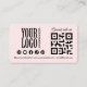 Looking for a way to get your customers engaged with your socials and your website? Check out this Connect with us Social Media QR Code Pink Business Card. You can easily add a custom QR with a link to your website. You only have to fill in the URL to your website and a QR code will be generated automatically. For your social media handle: you can delete the icons you don't need very easily in the design tool. Click the message button if you need any help. Happy Branding!
