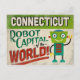 Ett lustigt vykort från Connecticut vintage resor med en vänlig robot med roligt retro stil som säger: "Connecticut, Robot Capital of the world!"