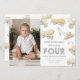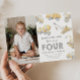 Foreman of Four! Watercolor Construction Vehicle 4th Birthday Photo Invitation