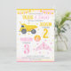 With soft watercolor details, colorful stars, and a bold split layout for easy personalization, this invite is ideal for a construction princess birthday, sibling joint party, trucks and tiaras theme, girly construction party, editable kids birthday invitation, and a pink and yellow birthday celebration.