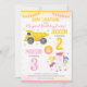 With soft watercolor details, colorful stars, and a bold split layout for easy personalization, this invite is ideal for a construction unicorn birthday, sibling joint party, trucks and magical theme, girly construction party, editable kids birthday invitation, and a pink and yellow birthday celebration.