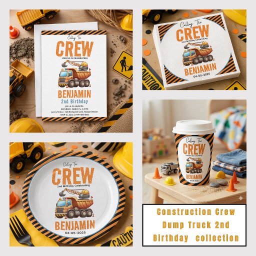 Construction Crew Dump Truck Boy 2nd Birthday Inbjudningar