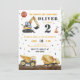 Den här inbjudan innehåller en vattenfärgsillustration av en byggtemafil på andra födelsedagen firande för en liten pojke. I illustrationen ingår lastbil, grävmaskin, bulldozer och olika vägmärken i gult, orange, blått och svart färg.