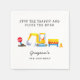 Färgdockan för födelsedagsfest av kultemat med vattenfärgad illustration av en byggplats med en bulldozer. I texten står det "stoppa trafiken och stänga vägen".