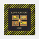 Den här konstruktionen har fyra klassiska lastbilar i fet gult som är sammansatta på brun och svart bakgrund. Den omfattar andra byggföremål som skyddsräcken och trafikledningarna samt svart- och gult-rand. Vi har täckt ett byggprojekt som lastbilar heter party: förnödenheter, dekoration, utsvävande slag och meningsfulla personliger!