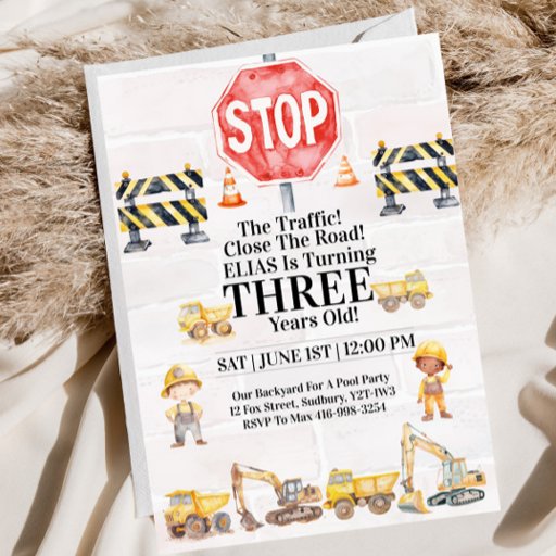 Construction Themed Children's Birthday Invitation Inbjudningar