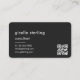Professional business card designed for consultants using a sleek black color palette. The layout includes a QR code to share online information while keeping the design clean and easy to read. Suitable for independent consultants, advisors, and professional service providers. Fully customizable text and QR destination with a print-ready layout.