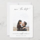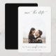 Contemporary Chic Minimalist, bröllop spara datum-fotokort. Foto på en march ram och svart typografi.