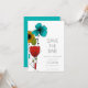Bröllop spara datum-kortet i anpassade har ett rent och modernt utseende. Den har en illustration av blommigten som inspirerats av Art nouveau i svart, ljusblå, röd, ljust grönt och gyllene gult. Anpassningsbarna finns i ett rent sans serif-teckensnitt.