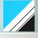 Den här moderna, eleganta designen har tre högers hörnvita, olika bredd, diagonalt parallellt rand mot vibrerande svarta och ljusblå himlar-bakgrunder.
